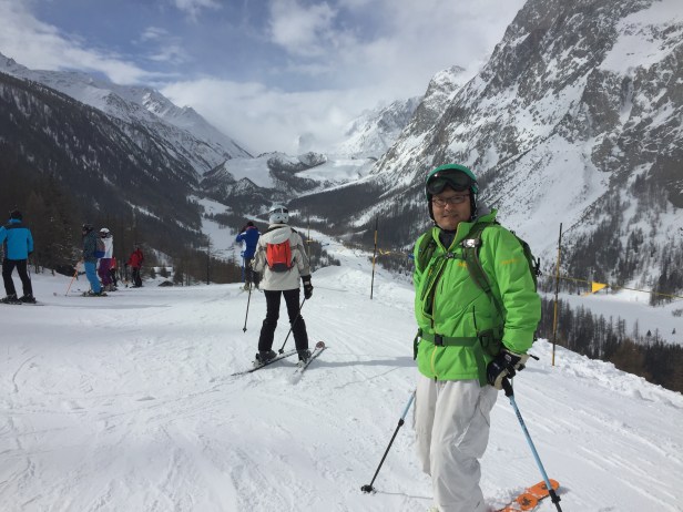 住在夏慕尼有個極方便的地理位置優勢,那就是它銜接了義大利和瑞士。 只要從夏慕尼穿過11.7公里長的勃朗峰隧道,那麼就到了義大利這邊的庫爾馬耶烏爾。它位於勃朗峰布蘭琪谷的東邊, 也是個頂級滑雪場兼野雪。從夏慕尼開車過來不到40分鐘,其實過隧道也不過20分鐘,主要還是塞車排隊買隧道票。