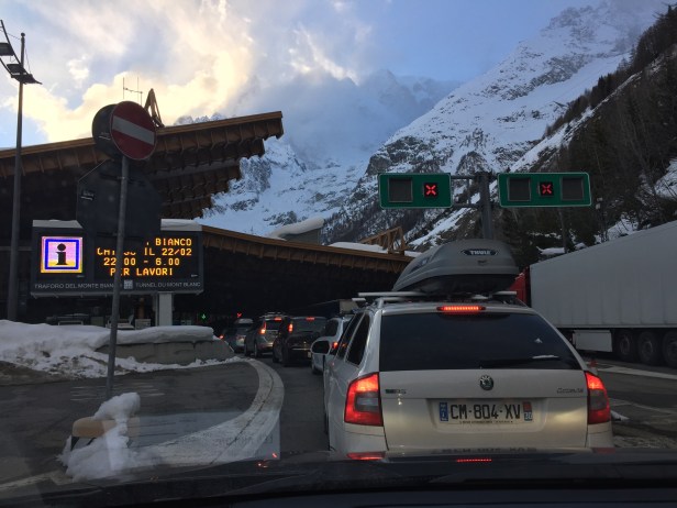 回法國時,再次塞車排隊過隧道。 這樣又結束了一天美好的滑雪旅遊!