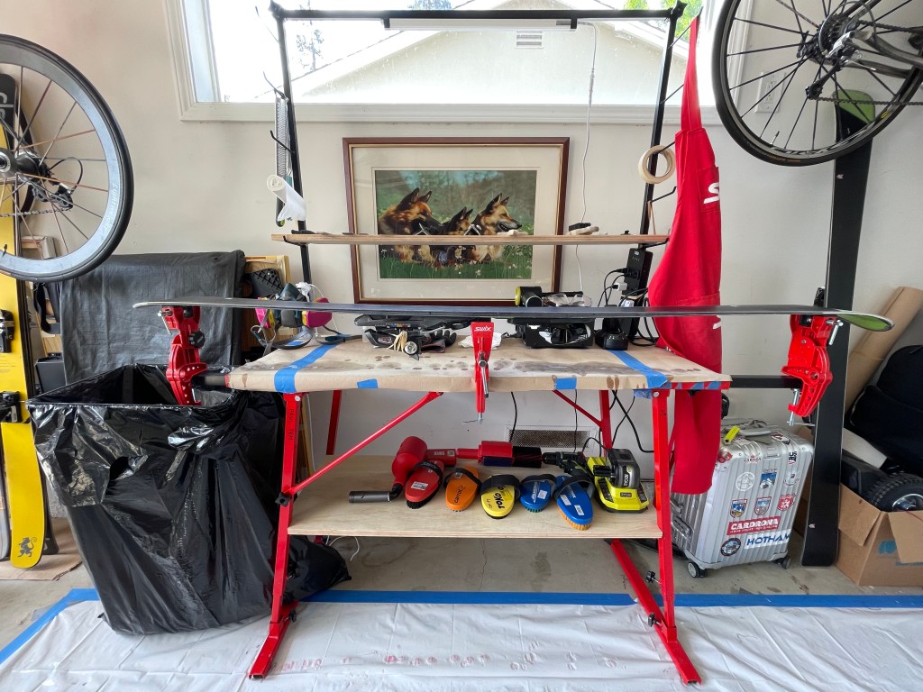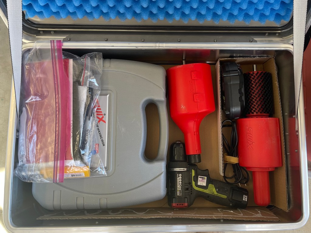 跟队许多年见识到雪联级别竞赛打蜡, 慢慢地也有了自己的装备。 同时也兼职随队打蜡师工作。 北京冬奥后,回到家里把装备设立好,重新帮家人朋友的板好好维修。 这里介绍一下我的车库里黑洞级别装备。