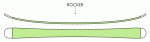 比方说,大山自由行的雪板如下图为偏摇椅的复合型。头尾部分摇椅长度较一般竞赛滑雪长,可以使得雪板容易浮在厚粉雪上,同时中半部的弧形设计具抓地力,在粉(powder)壳(crud)冰(icy)多种状态的野雪提供一定程度的控制功能。有效刃长相对较为短,雪板容易转弯, 方便游走于树林粉雪窄道。